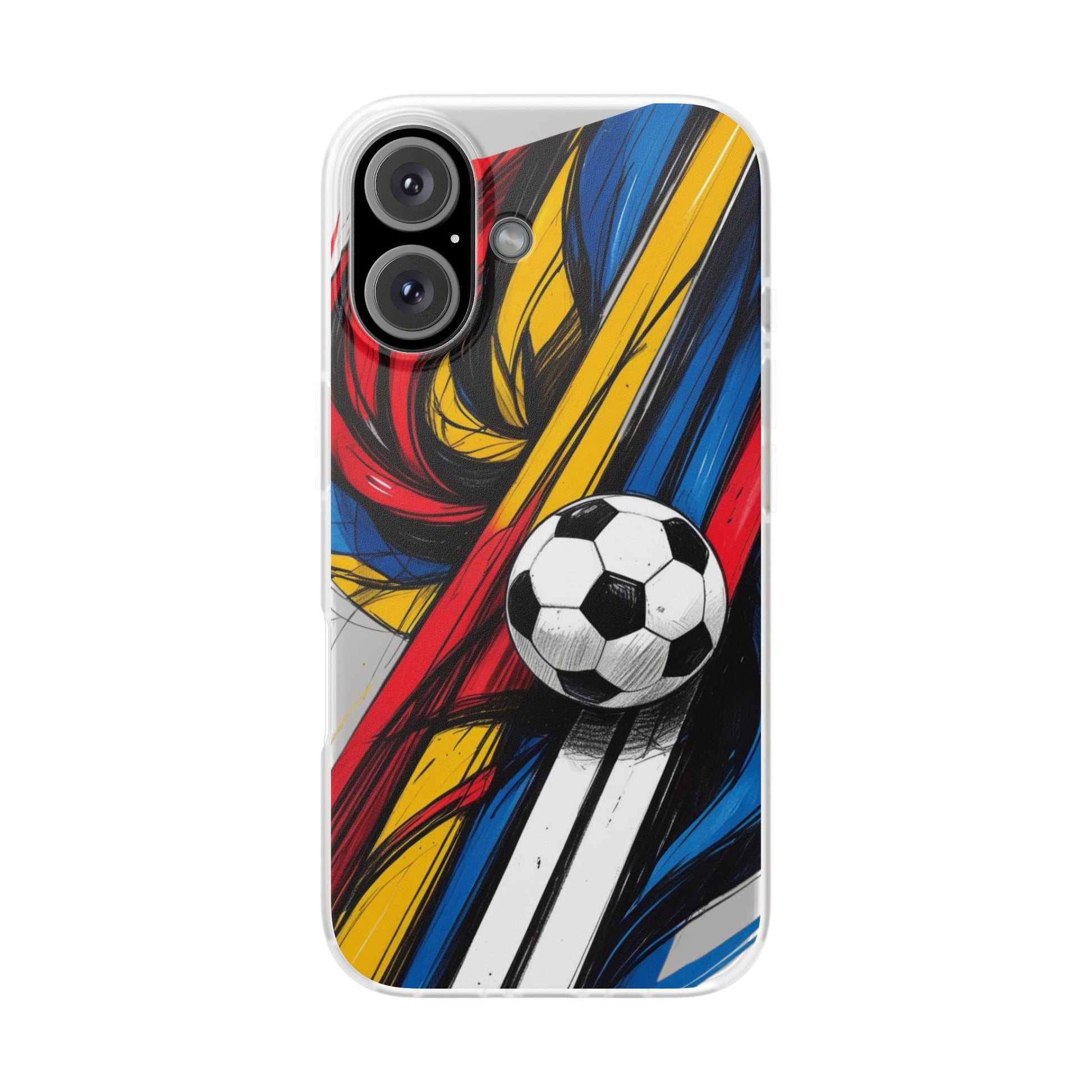 Sporty Clear Cases for Soccer Lovers, perfect gift for fans of soccer. The design is vibrant and unique, catering to those with an active lifestyle. Ideal for those who enjoy sports and want to show off their love for soccer. Relevant for birthdays, holidays, and sports events.
